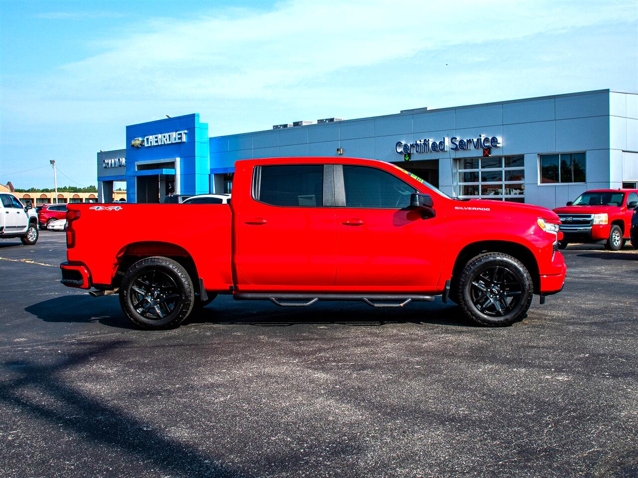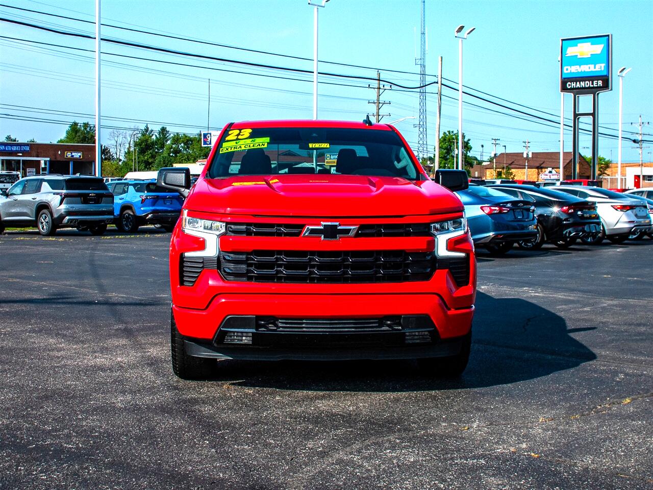Red Hot 2023 Chevrolet Silverado 1500 RST 4WD 10-Speed Automatic EcoTec3 5.3L V8 Clean Vehicle History Report, Clean Carfax, Bluetooth, Backup Camera, Remote Start, Low Miles, Silverado 1500 RST, 4WD, Red Hot.Recent Arrival!TEXT us on our website. It's easy and no-hassle. Give us a chance to BEAT THEIR PRICE on a new vehicle! Request a quote at chandlerchevroletusa.com! Chandler Chevrolet is conveniently located in Madison, Indiana, near both Louisville and Cincinnati. We put our customers first. If you don’t see what you want, new or used, we will locate it for you. We welcome trade-ins and will buy your vehicle whether or not you buy ours; come in for a free, friendly appraisal. Don’t have a way to get here? We will come to you or give you a ride. We believe that building good relationships with our customers comes before all else, whether you're considering a new or used vehicle or stopping in for a quick oil change. Call or stop in today and see why we’re called The Savings Place !