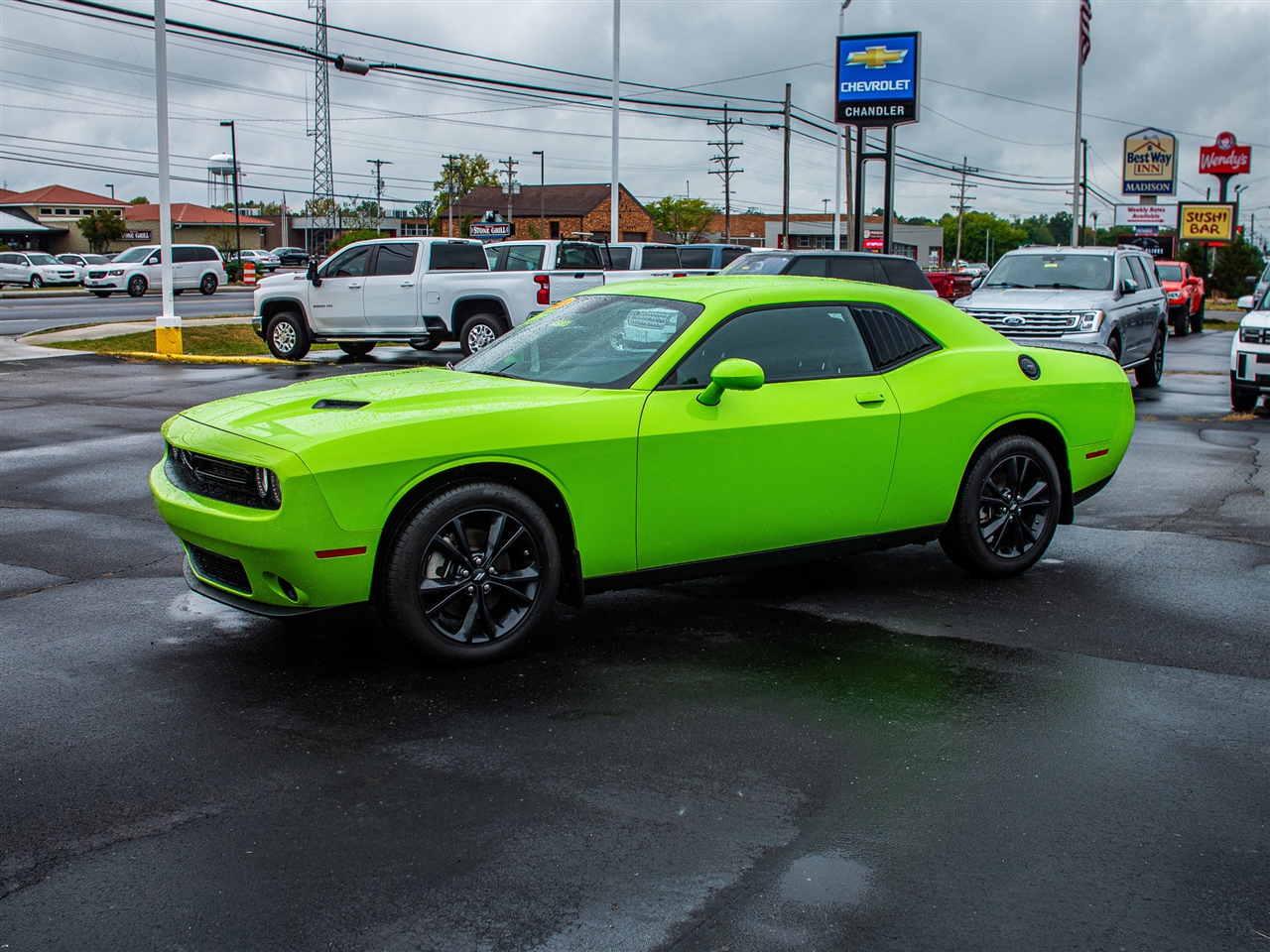 Sublime Metallic Clearcoat 2023 Dodge Challenger SXT AWD 8-Speed Automatic 3.6L V6 24V VVT AWD - Never Worry About the Weather Again!, Clean Vehicle History Report, Clean Carfax, 6cyl, Bluetooth, Backup Camera, Low Miles, Challenger SE, AWD, Sublime Metallic Clearcoat, AWD Rhombi Black Badge, Black Fuel Filler Door, Black Grille w/Bezel, Blacktop Package, Challenger Blacktop Grille Badge, Front Fog Lamps, Gloss Black I/P Cluster Trim Rings, Leather Performance Steering Wheel, Rhombi 2-Pc Wheel Center Cap, Satin Black Dodge Tail Lamp Badge.Recent Arrival! 18/27 City/Highway MPGTEXT us on our website. It's easy and no-hassle. Give us a chance to BEAT THEIR PRICE on a new vehicle! Request a quote at chandlerchevroletusa.com! Chandler Chevrolet is conveniently located in Madison, Indiana, near both Louisville and Cincinnati. We put our customers first. If you don’t see what you want, new or used, we will locate it for you. We welcome trade-ins and will buy your vehicle whether or not you buy ours; come in for a free, friendly appraisal. Don’t have a way to get here? We will come to you or give you a ride. We believe that building good relationships with our customers comes before all else, whether you're considering a new or used vehicle or stopping in for a quick oil change. Call or stop in today and see why we’re called The Savings Place !