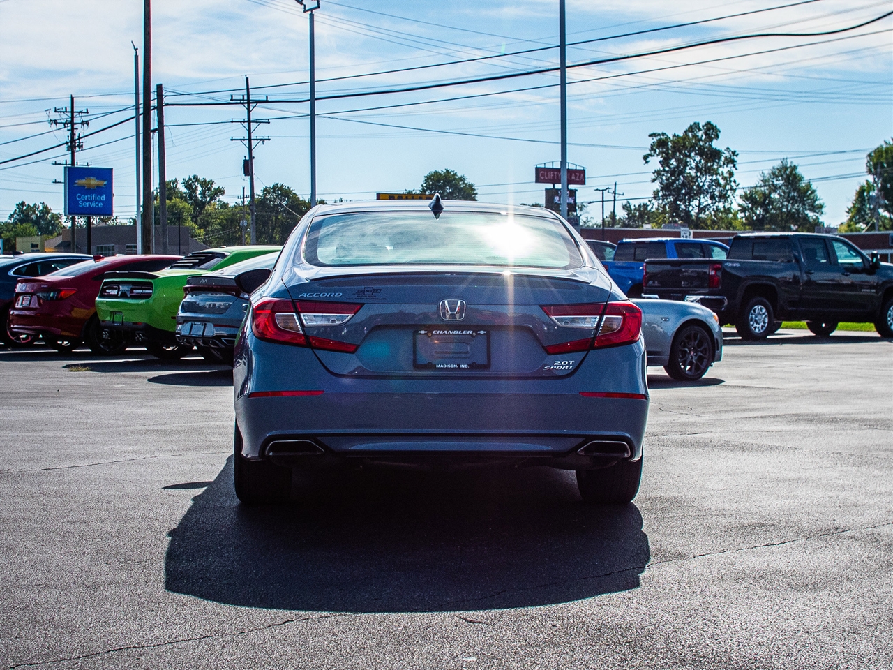 Sonic Gray Pearl 2022 Honda Accord Sport 2.0T FWD 10-Speed Automatic I4 DOHC 16V Turbocharged 4cyl Turbo, FWD - Great All Year Round - Better MPG!, Local Trade!, Bluetooth, Backup Camera, Leather Seats, Low Miles, FWD, Sonic Gray Pearl.Recent Arrival! 22/32 City/Highway MPGTEXT us on our website. It's easy and no-hassle. Give us a chance to BEAT THEIR PRICE on a new vehicle! Request a quote at chandlerchevroletusa.com! Chandler Chevrolet is conveniently located in Madison, Indiana, near both Louisville and Cincinnati. We put our customers first. If you don’t see what you want, new or used, we will locate it for you. We welcome trade-ins and will buy your vehicle whether or not you buy ours; come in for a free, friendly appraisal. Don’t have a way to get here? We will come to you or give you a ride. We believe that building good relationships with our customers comes before all else, whether you're considering a new or used vehicle or stopping in for a quick oil change. Call or stop in today and see why we’re called The Savings Place !